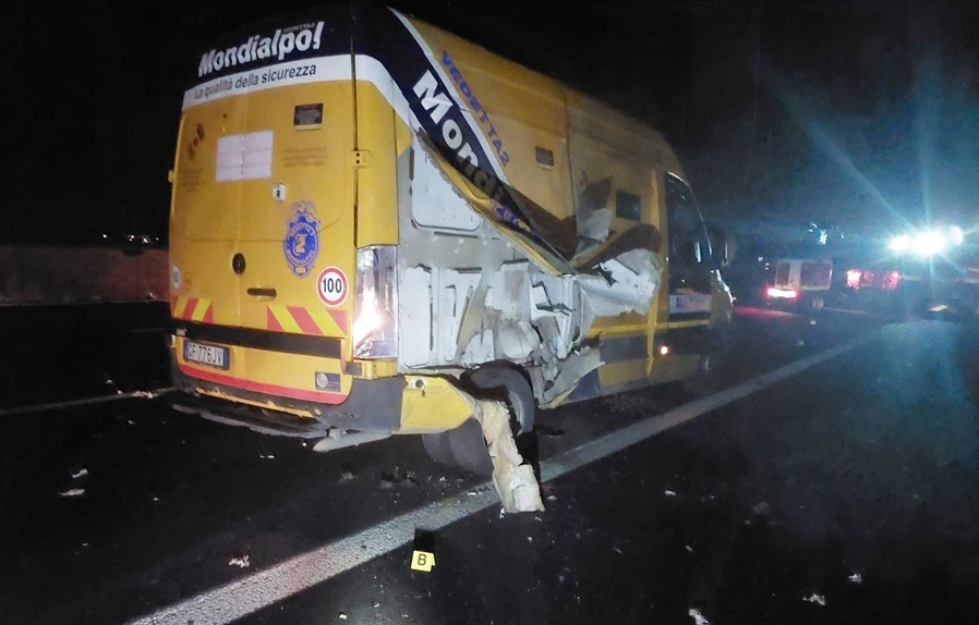 “Nel frattempo, sulla sede autostradale, il fatto era in corso – ha proseguito Chiantese -. I malviventi hanno affiancato in corsa i furgoni portavalori della Mondialpol, aprendo il fuoco confucili d’assalto Kalashnikov e lanciando chiodi sulla carreggiata, riuscendo così a bloccare i mezzi. Hanno tentato più volte di aprirli, ma senza successo, come confermato dai sistemi di sicurezza dei blindati, intorno alle 17.45. Non riuscendo nel loro intento, si sono dati alla fuga, abbandonando anche un veicolo, una Maserati, e uscendo dall’autostrada, verosimilmente perché uno dei componenti della banda era rimasto ferito”.