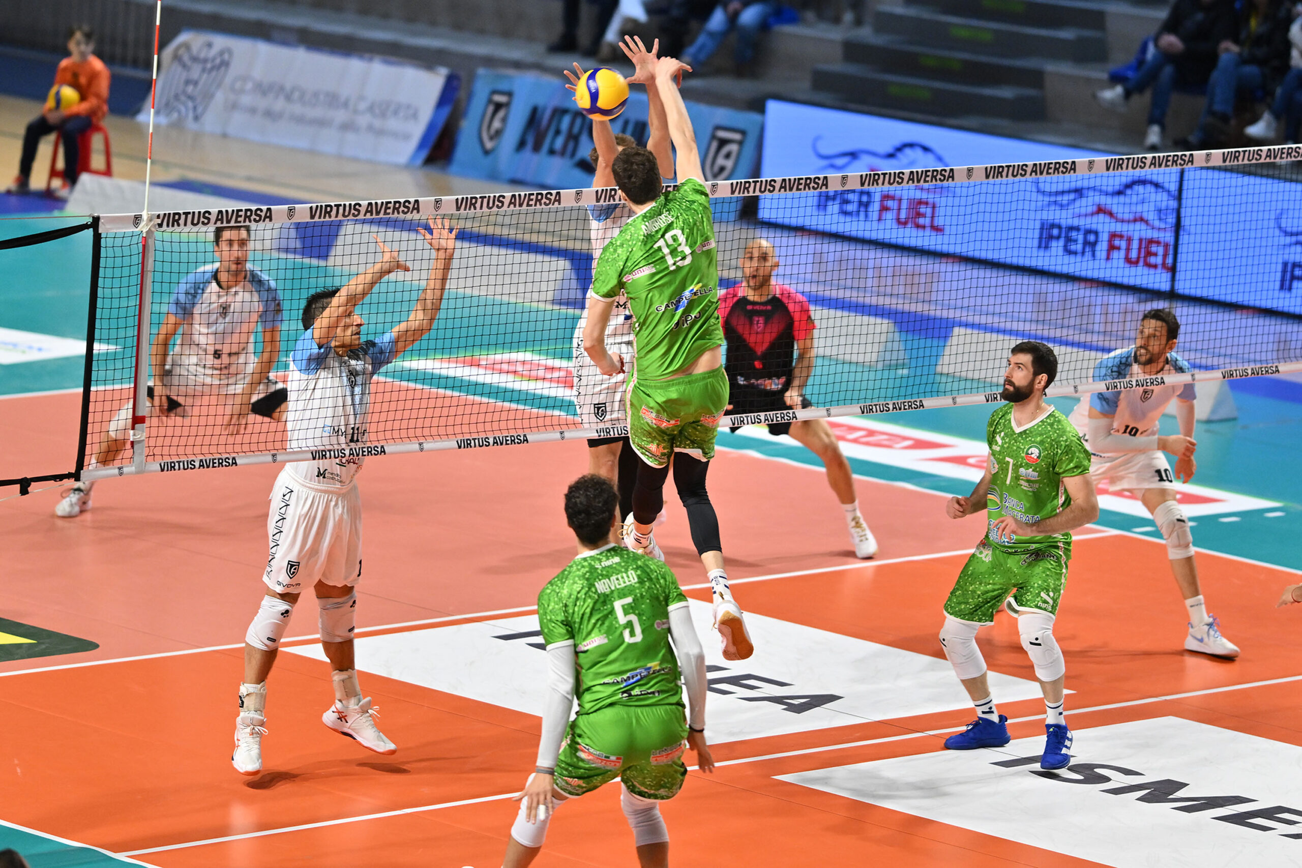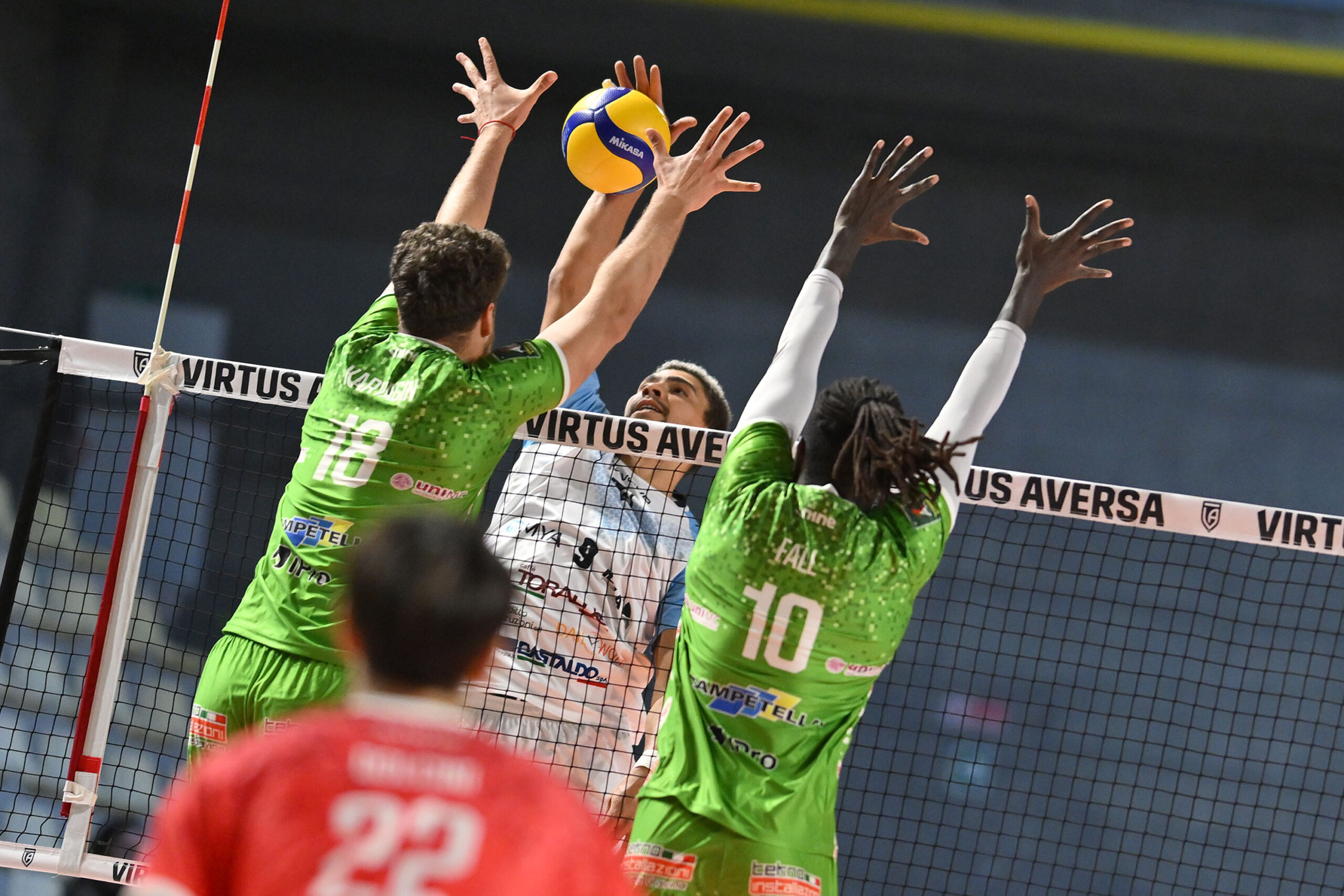 Aversa tiene meglio tutte le fasi del match, con Garnica abile nel gestire i suoi attaccanti, agevolato da una ricezione mai troppo messa in difficoltà dalla battuta marchigiana.