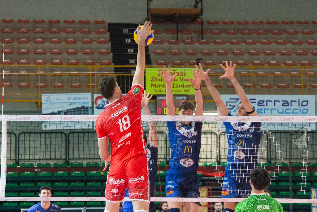 Banca Macerata Fisiomed si arrende 0-3 (20-25, 21-25, 28-30) a una più determinata Gruppo Sferc Consoli Brescia, nella gara valida per la settima giornata di ritorno del campionato maschile di Serie A2.