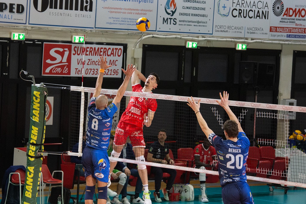 Terzo set. Rimane in campo Garello da titolare per Zhelev, ma non cambia la musica. È un errore dalla seconda linea dei tucani a mantenere i biancorossi ancora in vita: dal potenziale -5, infatti, si arriva alla quasi parità in un batter d’occhio con l’ace di Karyagin (6-7). Capitan Fall piazza il colpo del 12-12. Entra anche Fabi a dar manforte, le due squadre provano a vincere il parziale anche con molte armi dalla panchina: Macerata ancora avanti, 18-16. Karyagin mantiene ancora le squadre sul +2 (22-20). La battuta di Cominetti del 25 pari è irriverente, ma vale il primo match ball per gli ospiti: annulla Novello. Chiudono poco dopo i biancoblù allo stesso modo dell’incontro dell’anno precedente: Cavuto dai nove metri sigla il 28-30.