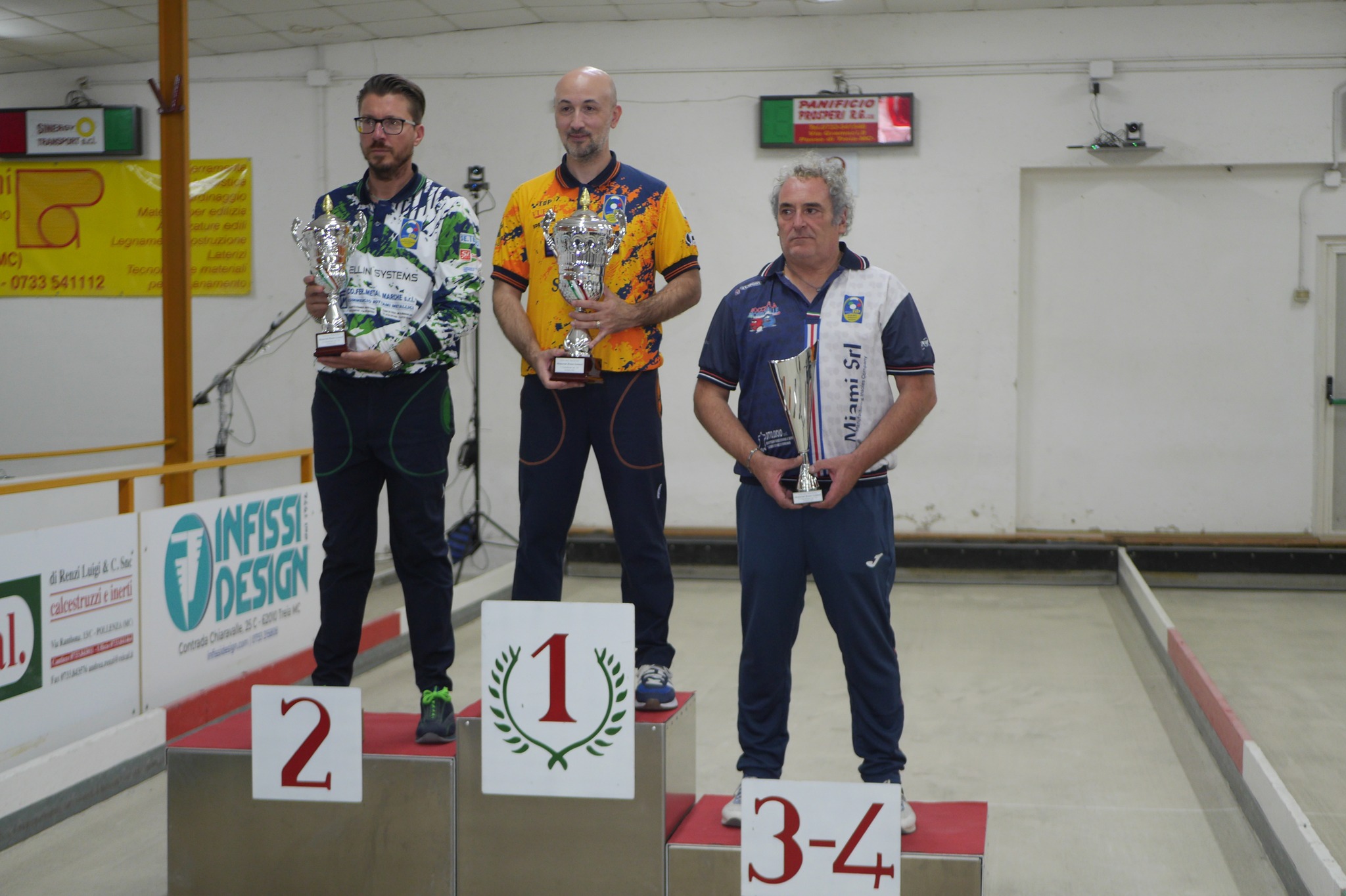 A trionfare è stato Giuliano Di Nicola (Società S.Angelo Montegrillo – PG), cinque volte campione italiano e due volte campione mondiale, che ha superato in una finale avvincente il pluricampione Gaetano Miloro (Società Castelfidardo – AN) con il punteggio di 10-6. Sul podio sono saliti anche Simone Renzi (Bocciofila Morrovalle – MC) e Davide Truzzi (Società Sammartinese – MO), rispettivamente terzo e quarto qualificato.