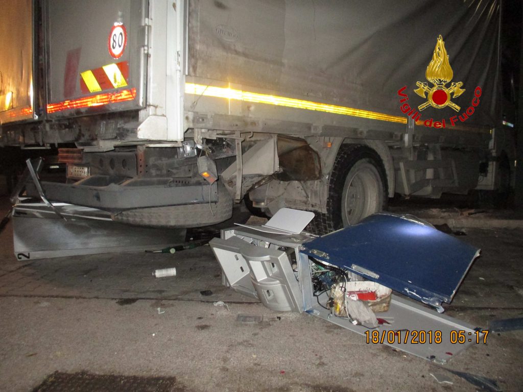A occuparsi degli accertamenti e del tempestivo avvio delle indagini è la Questura di Macerata. Nel frattempo si è appurato che all’interno della colonnina cassa/bancomat erano contenuti circa seimila euro e che il camion è stato rubato nella stessa notte a una ditta di Montecassiano.