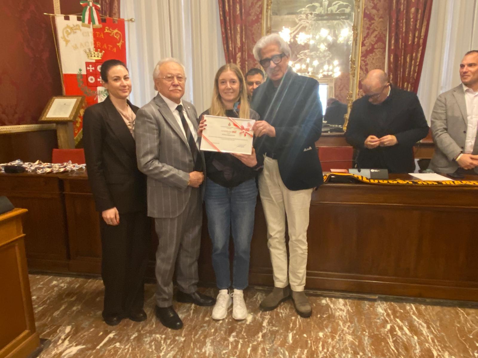 A loro è stato consegnato il premio Macerata Più, riconoscimento simbolico che l’Amministrazione comunale ha istituto per sottolineare il valore dello sport e premiare le eccellenze sportive sia sotto il profilo dei risultati che dell’etica.