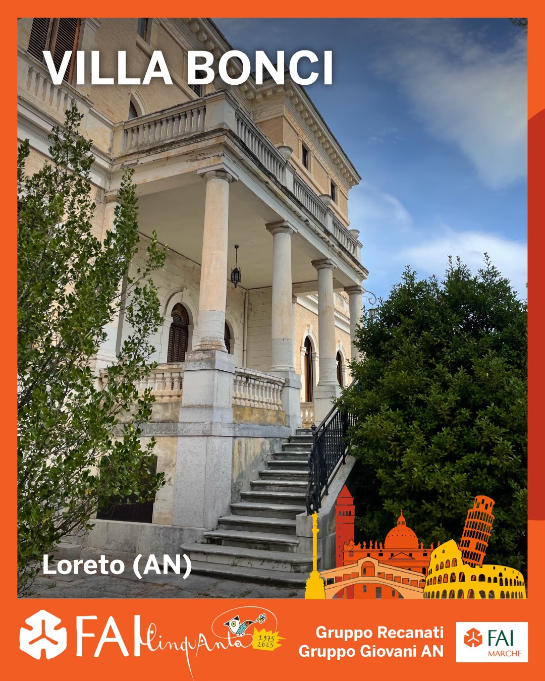 Tra le aperture nelle Marche, a Loreto da segnalare Villa Bonci – Complesso Aeronautica Militare. Luogo normalmente non visitabile, all’interno della base dell’Aeronautica Militare e ssede del Centro di Formazione Aviation English. Si potranno ammirare le bellezze architettoniche della villa, le stanze affrescate al primo piano e una mostra fotografica dell’ONFA (Opera Nazionale per i figli degli aviatori).