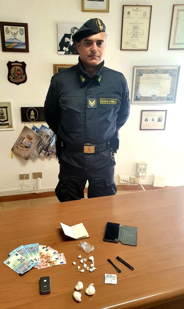 La perquisizione della Guardia di Finanza nella sua abitazione, sempre con l’ausilio del cane antidroga, ha permesso di rinvenire nel bagno, occultata all’interno di un mobiletto, cocaina per circa 27 grammi, parzialmente già ripartita in dosi pronte alla vendita. Veniva rinvenuto e sequestrato anche materiale funzionale al confezionamento dello stupefacente e 150 euro in contanti.