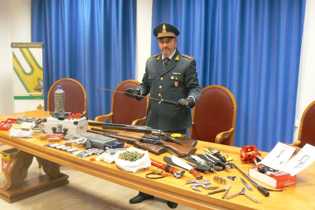 Nel domicilio del responsabile, cittadino italiano munito di licenza di porto d’armi per uso sportivo, i finanzieri hanno trovato 1,2 kg di polvere da sparo illegalmente detenuta e ritirato in via cautelare, ai sensi delle Leggi in materia di Pubblica Sicurezza, armi da fuoco (due pistole, tre fucili, una carabina) e armi da “punta e da taglio”.