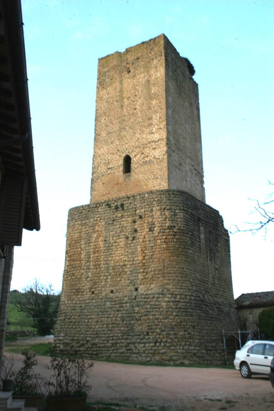Delle mura, che cingevano interamente il castello, per un circuito di circa 200 metri, non rimangono che pochi avanzi, mentre è ancora in piedi il fornice della porta del castello con arco a tutto sesto. Presso l’angolo a nord-ovest delle mura si eleva il grosso basamento pentagonale, probabilmente un’aggiunta effettuata nel 1471, cui è sovrapposta un’alta torre quadrata già esistente nella fortificazione prerinascimentale.