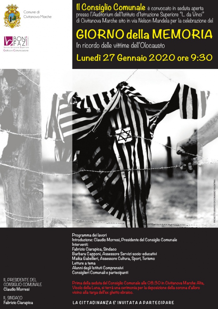 Il Comune di Civitanova Marche ha celebrato il Giorno della Memoria insieme ai suoi giovani. Dopo la visita dove era il Ghetto ebraico nella Città Alta, studenti, insegnanti e rappresentanti delle istituzioni si sono ritrovati all’Auditorium degli Istituti Superiori Leonardo da Vinci.