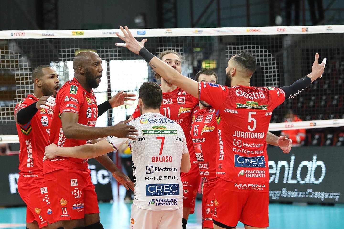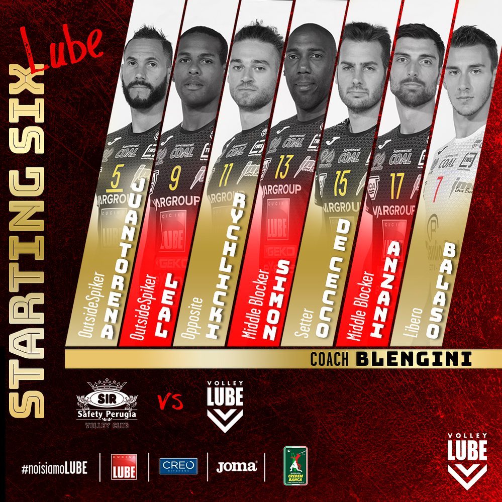 CUCINE LUBE CIVITANOVA: Kovar, Marchisio, Juantorena 15, Balaso (L), Leal 18, Larizza (L) n.e., Rychlicki 13, Diamantini n.e., Simon 21, De Cecco, Anzani 3, Falaschi n.e., Hadrava n.e., Yant. All. Blengini.