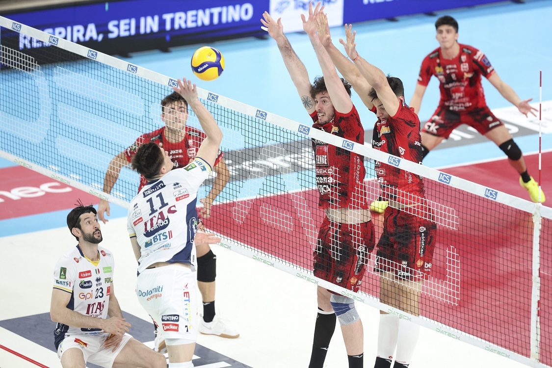 Primi tre set combattuti e decisi dalle fiammate finali delle due squadre, con Trento capace di tenere vivo l’incontro ai vantaggi del terzo parziale. Senza storia il quarto set, dominato a muro (8 i vincenti) da Civitanova.