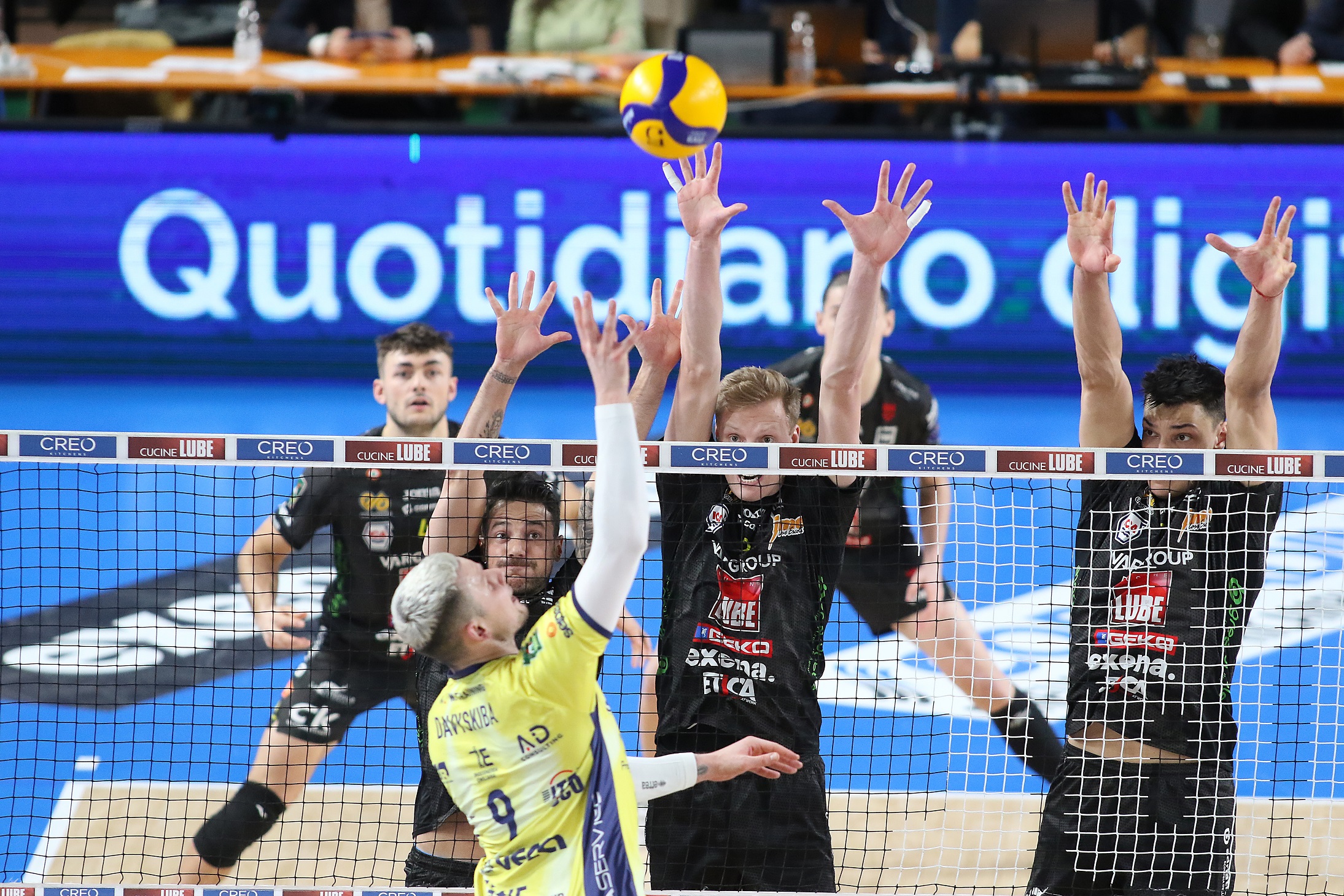 Cucine Lube Civitanova: Bottolo 3, Gargiulo 7, Loeppky 11, Nikolov 22, Tenorio 0, Boninfante 2, Balaso (L), D’Heer 6, Orduna 0, Bisotto (L), Kukartsev 12, Podrascanin 0, Duflos-Rossi 0. N.E. All. Medei.