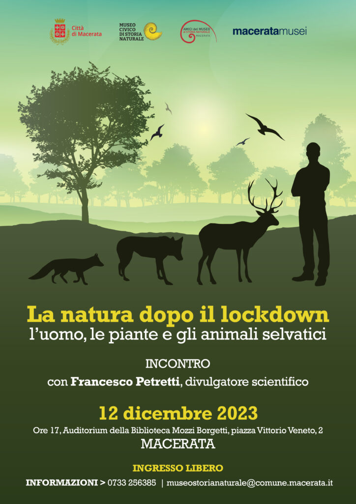 Martedì 12 dicembre, ore 17 nell’auditorium della Biblioteca Mozzi-Borgetti a Macerata, il biologo Francesco Petretti terrà l’incontro dal titolo “La natura dopo il lockdown, l’uomo le piante e gli animali selvatici”.