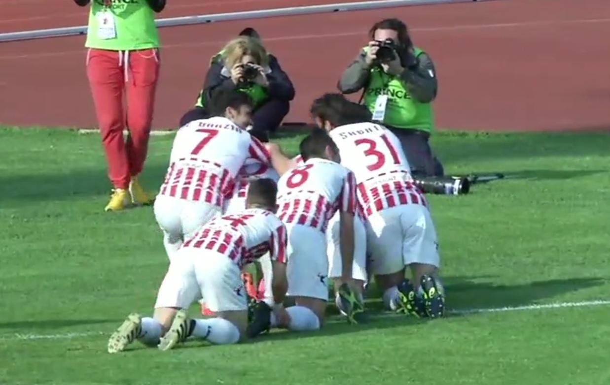 22’: Rata in vantaggio! Ventola per Colombi sulla destra, quindi palla filtrante in area per Turchetta che controlla sotto misura e di sinistro infila Rossi: 1-0 ed esultanza collettiva vicino alla bandierina del corner.