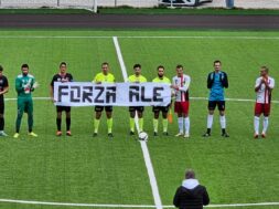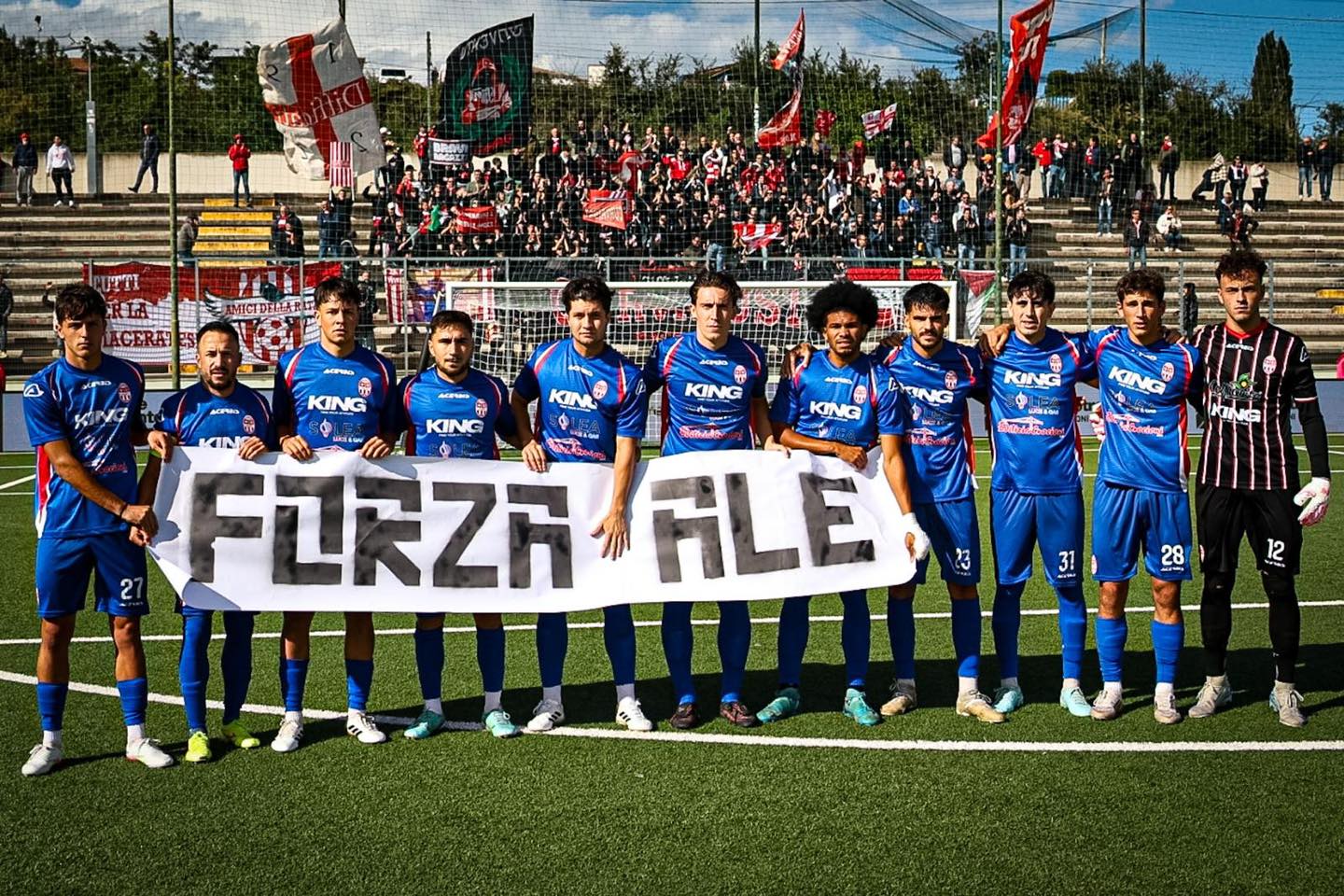 La dedica ad Alessandro Forte, 19enne giocatore del Casette Verdini, coinvolto in un incidente e ora in ospedale.