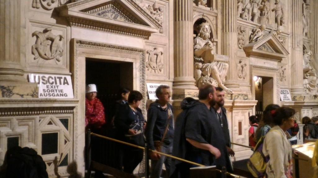 Qui musica e in fila per visitare la Santa casa, aspettando che la piazza accolga le decine di migliaia di pellegrini e la statua della Madonna nera a chiudere il corteo. L’afflusso durerà quasi due ore.