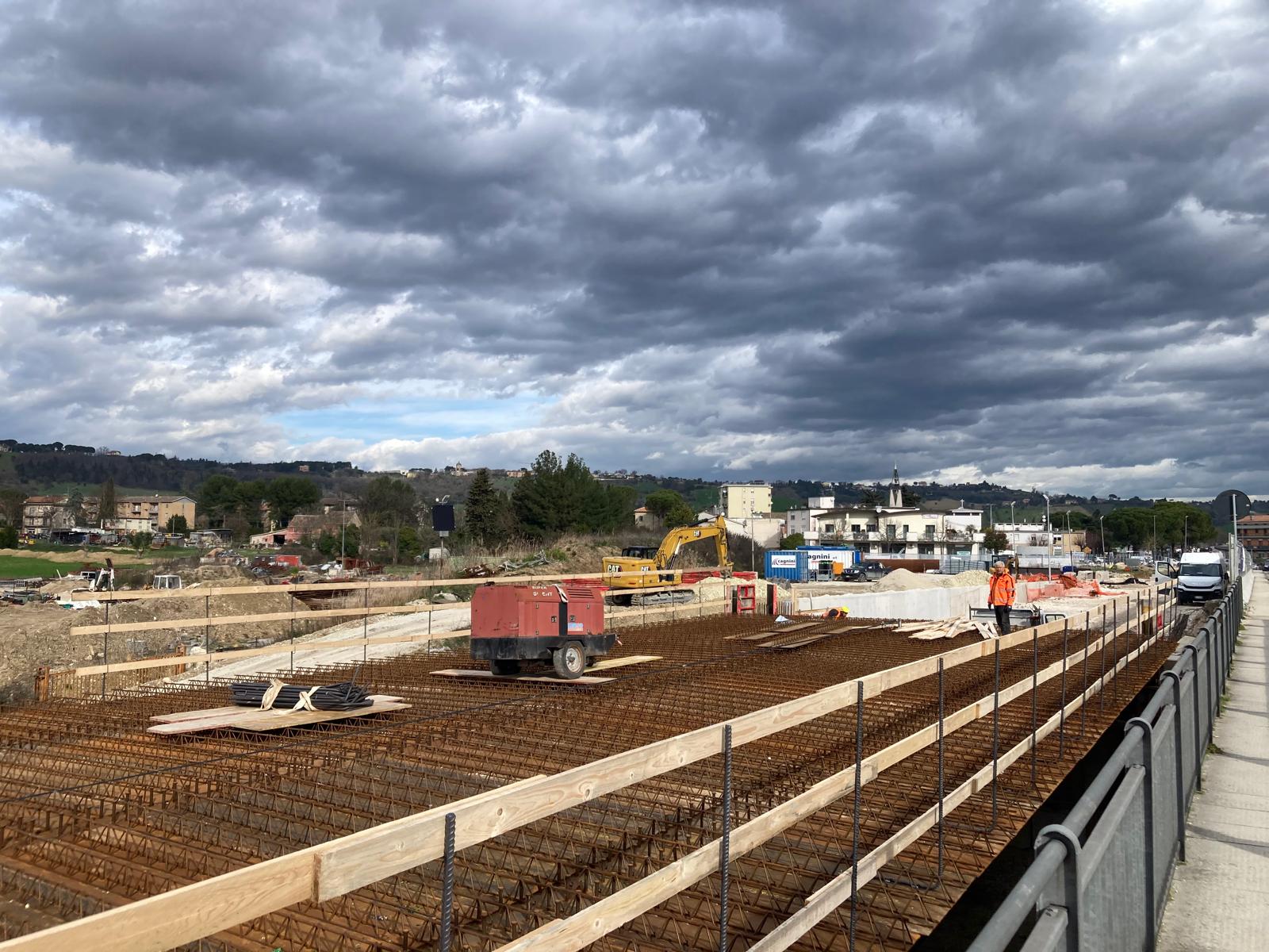 Ora che le sottostrutture sono state completate bisognerà attendere qualche giorno per la stabilizzazione dell’impalcato, poi i tecnici della ditta Cagnini Costruzioni srl e della Europrogress Group srl, il raggruppamento di imprese che ha vinto l’appalto, potranno procedere con il getto della soletta.