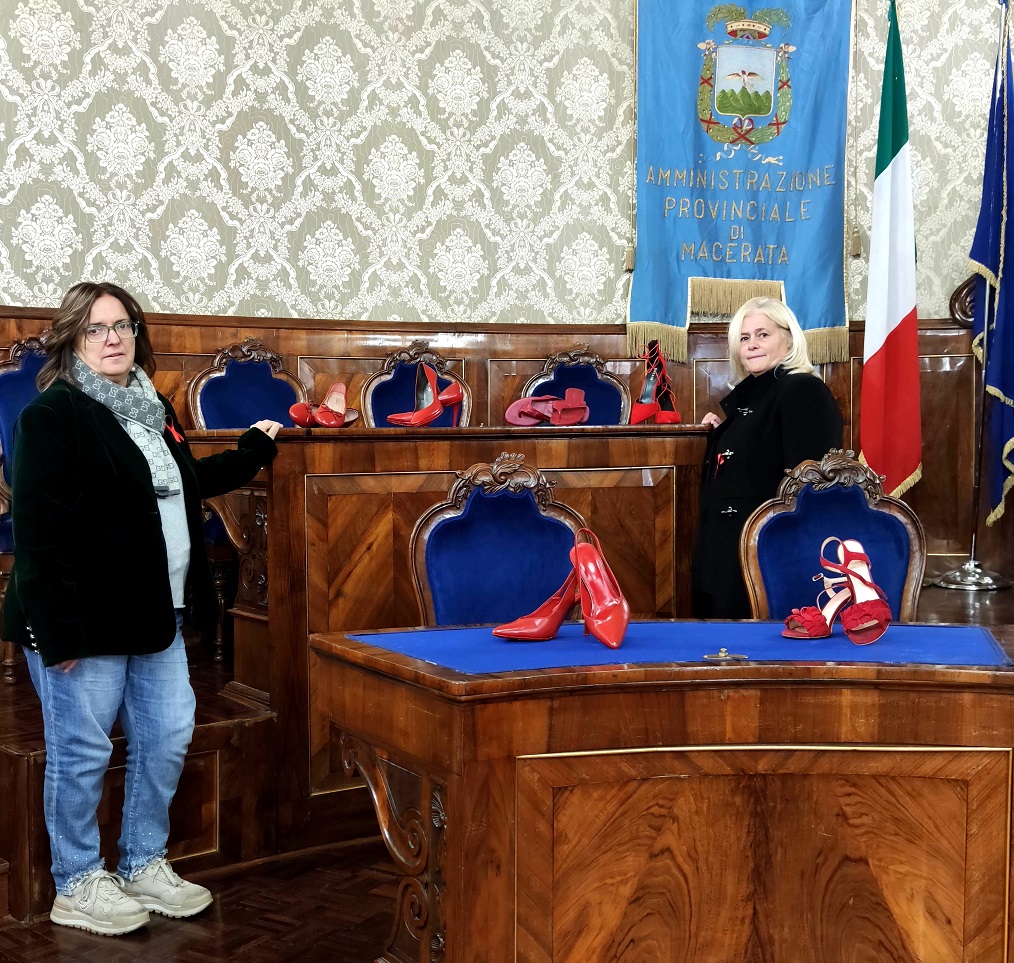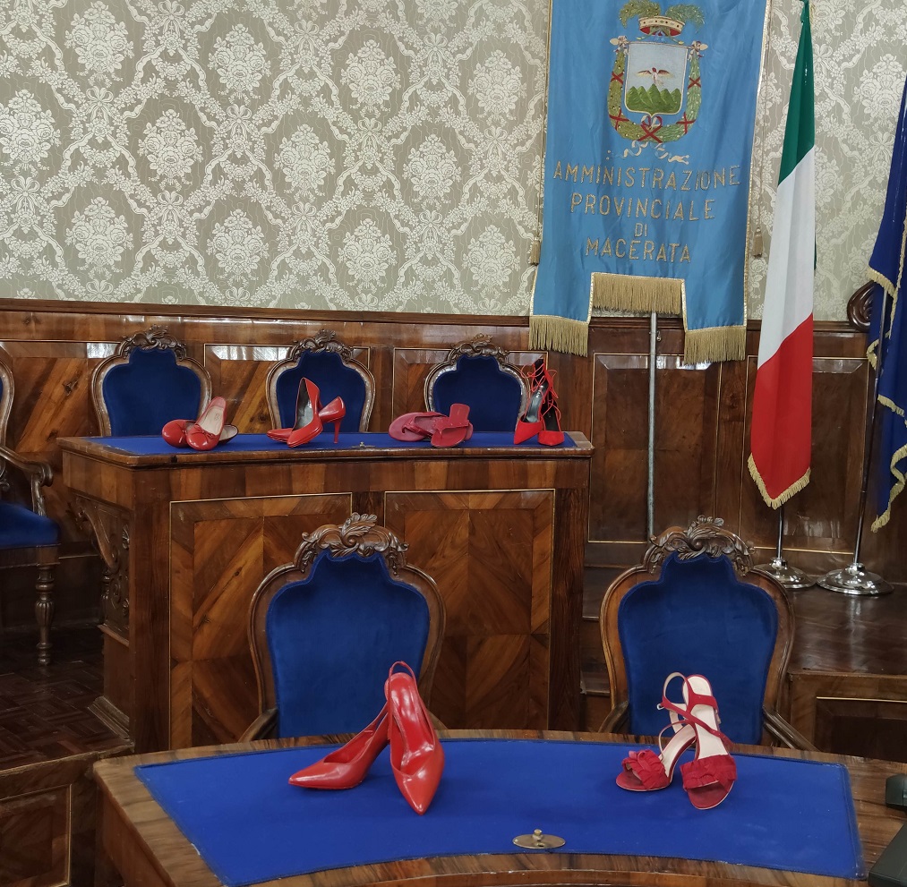La Provincia di Macerata ha voluto celebrare la “Giornata internazionale per l’eliminazione della violenza contro le donne” con un profondo silenzio e scarpe rosse sugli scranni della sala del Consiglio Provinciale.