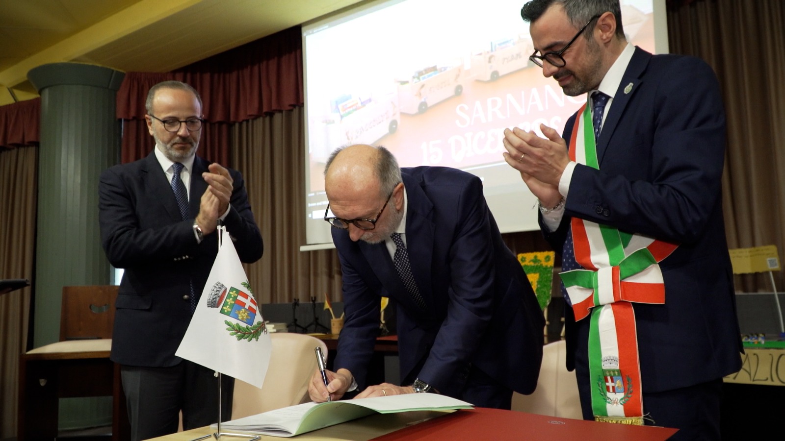 «Oggi è una giornata significativa per l’Amministrazione comunale e per l’intera comunità di Sarnano – ha dichiarato il sindaco Fabio Fantegrossi –. Abbiamo scelto di conferire la Cittadinanza onoraria a tre personalità di grande valore che, in un momento particolarmente difficile per il nostro paese, hanno saputo offrire un contributo concreto e profondo. Attraverso la solidarietà dimostrata e l’impegno nella ricostruzione della scuola dell’infanzia e della scuola secondaria di primo grado, hanno restituito fiducia e speranza, in particolare alle nuove generazioni».