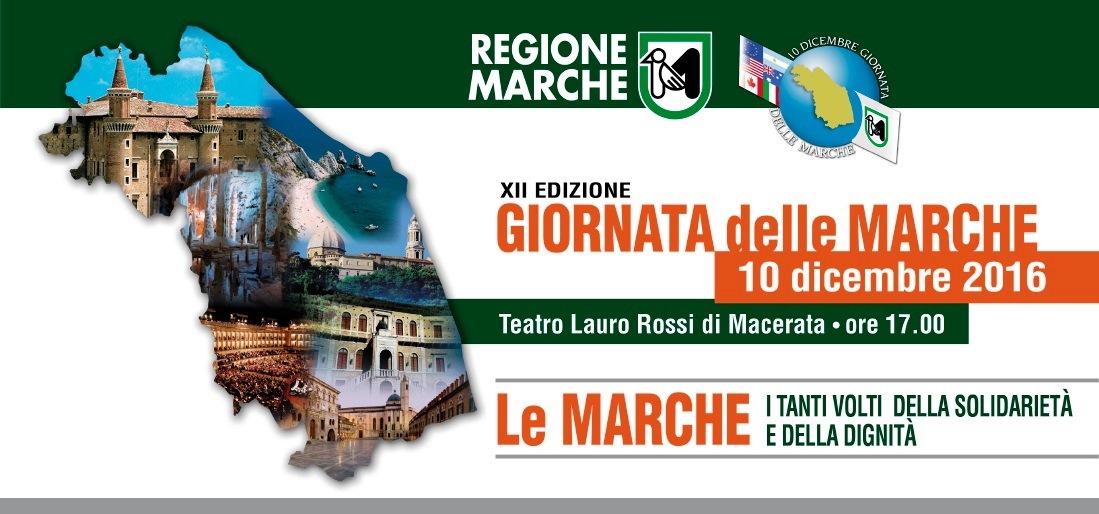 “Le Marche, i tanti volti della solidarietà e della dignità” danno il titolo alla dodicesima Giornata delle Marche che si svolgerà a Macerata (Teatro Lauro Rossi, ore 17.00) sabato 10 dicembre. Tema quanto mai sentito all’indomani degli eventi sismici che hanno ferito duramente la comunità marchigiana, comunque capace di confermare la sua natura solidale, laboriosa ed orgogliosa.