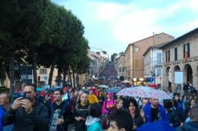 Pochi minuti alle cinque e mezza del mattino, che coincide con lo spuntar dell’alba, da un’ora a sprazzi ha ripreso a piovere. In cima al discesone di Montereale appare l’avamposto del Pellegrinaggio Macerata-Loreto. E’ l’immagine simbolo di questo appuntamento che si ripete per la trentottesima volta, le avanguardie di una fiume che si ingrosserà e […]