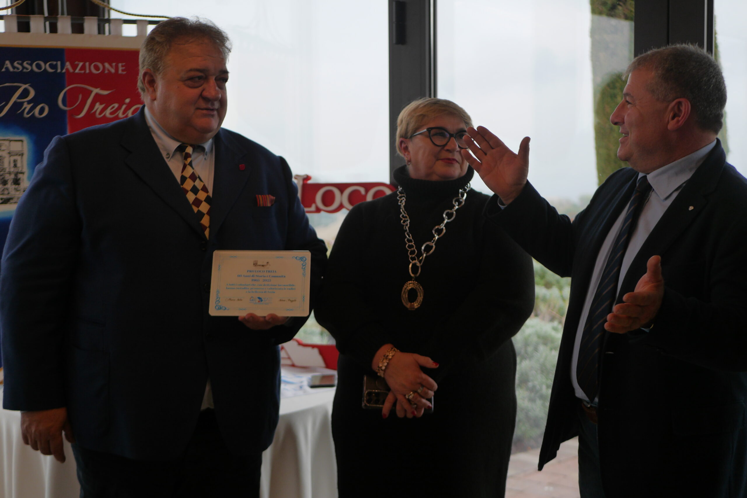 Il Sindaco di Treia, Franco Capponi, ha voluto esprimere un sentito ringraziamento a tutta l’associazione per il prezioso contributo offerto in questi lunghi sessant’anni, consegnando una targa commemorativa e un portalettere raffigurante la città come segno di riconoscenza da parte dell’Amministrazione.