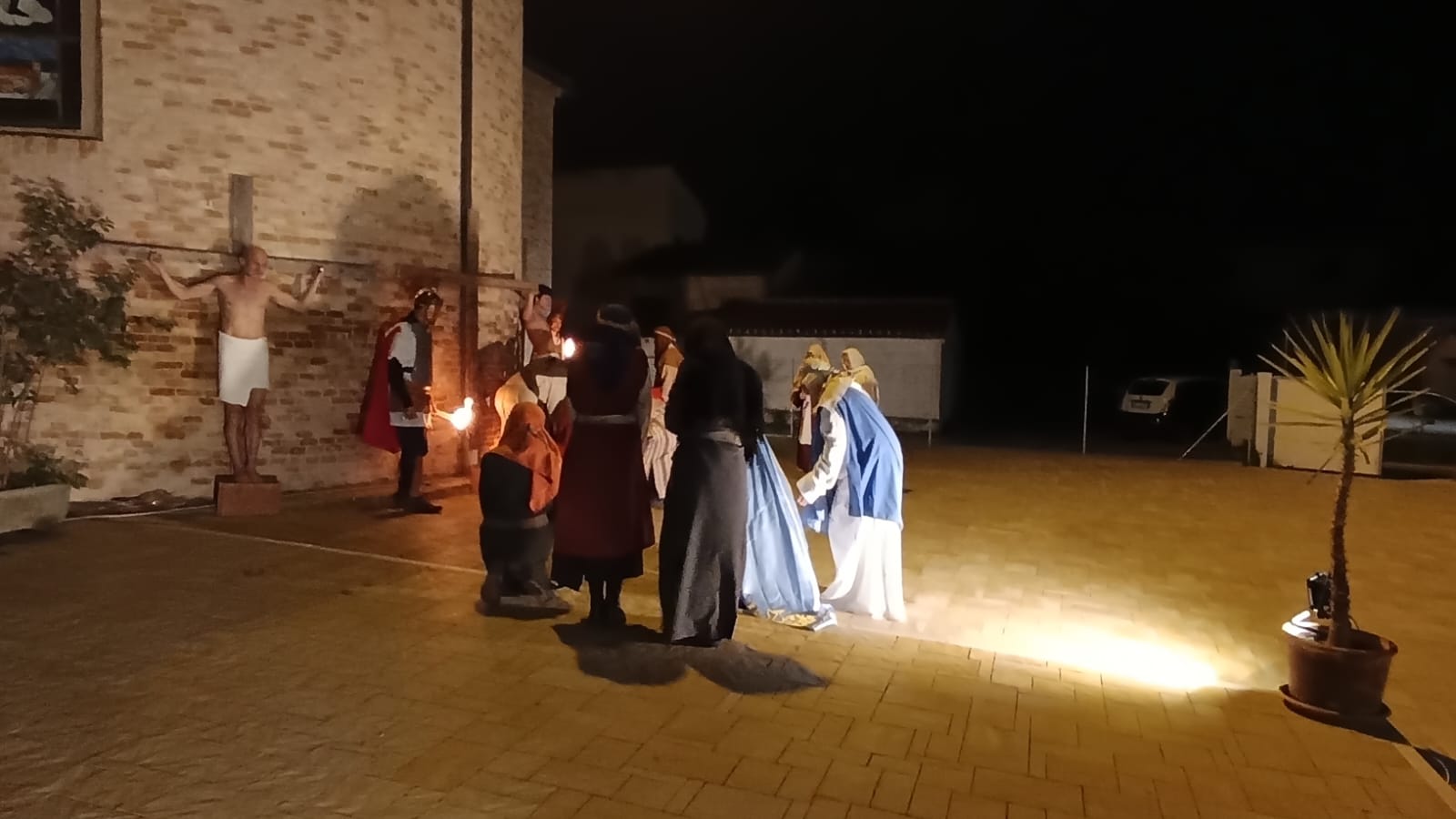 Per le scenografie è stato valorizzato il retro abside della chiesa parrocchiale, insieme al nuovo piazzale, completato appena il mese scorso, che ha contribuito a creare un’atmosfera intensa e coinvolgente.